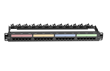 用于六类布线的设备间或配线间,实现干线分配和网络或终端设备连接。过背部的卡线排端接水平或垂直布线,并顺利获得前面的RJ45插口将工作区终端连接到网络交换设备。